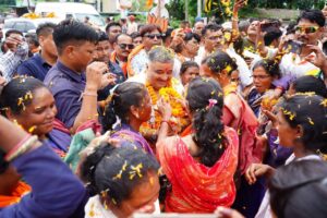 महामाया चौक से लेकर संकल्प भवन तक हर जगह भव्य स्वागत द्वार सजाए गए थे।सड़कें पुष्पवर्षा से ढकी हुई थीं। कार्यकर्ताओं के उत्साहपूर्ण नारे –