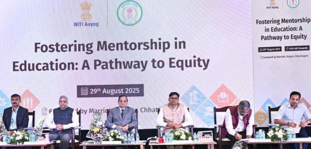 नीति आयोग ने छत्तीसगढ़ की राजधानी रायपुर में आज “Fostering Mentorship in Education: A Pathway to Equity” विषय पर राष्ट्रीय परामर्श कार्यशाला आयोजित की। इस कार्यशाला का उद्देश्य राष्ट्रीय शिक्षा नीति (एनईपी) 2020 के सिद्धांतों के अनुरूप शिक्षा व्यवस्था को अधिक न्यायपूर्ण, समावेशी और सशक्त बनाने में मेंटरशिप की भूमिका पर विचार-विमर्श करना था।