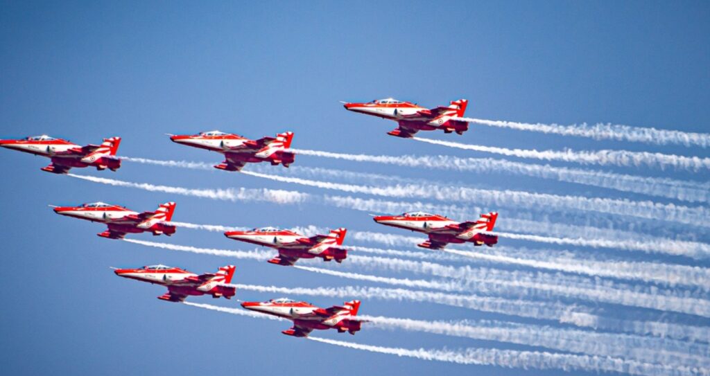 🔸️मुख्य आकर्षण: नौ फाइटर प्लेन, तिरंगे की फॉर्मेशन, लाइव कॉमेंट्री और भारतीय वायुसेना का पराक्रम प्रदर्शन
