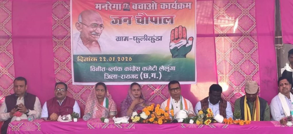 मनरेगा बचाओ संग्राम : लैलूंगा विकासखंड के चार गांवों में कांग्रेस की जन चौपाल, केंद्र सरकार पर योजना समाप्त करने का आरोप