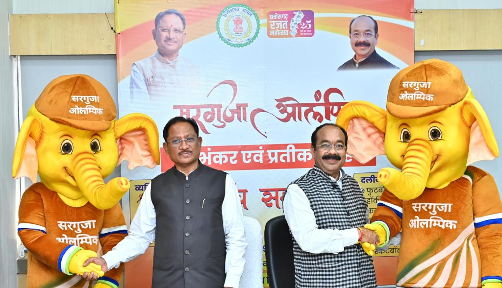 मुख्यमंत्री विष्णुदेव साय ने आज मंत्रालय महानदी भवन में आयोजित गरिमामयी समारोह में सरगुजा ओलंपिक के प्रतीक चिन्ह (लोगो) एवं शुभंकर “गजरु” का अनावरण किया। इस अवसर पर उन्होंने कहा,कि बस्तर ओलंपिक की तरह सरगुजा ओलंपिक भी जनभागीदारी और उत्साह के साथ नई पहचान बनाएगा।मुख्यमंत्री ने 12 खेल विधाओं में लगभग 3 लाख 50 हजार खिलाड़ियों के पंजीयन पर प्रसन्नता व्यक्त करते हुए कहा कि यह संख्या सरगुजा अंचल के युवाओं की ऊर्जा, उत्साह और खेल के प्रति समर्पण को दर्शाती हैं। उन्होंने आयोजन की तैयारियों की जानकारी लेते हुए सफल आयोजन की अग्रिम शुभकामनाएं दीं।