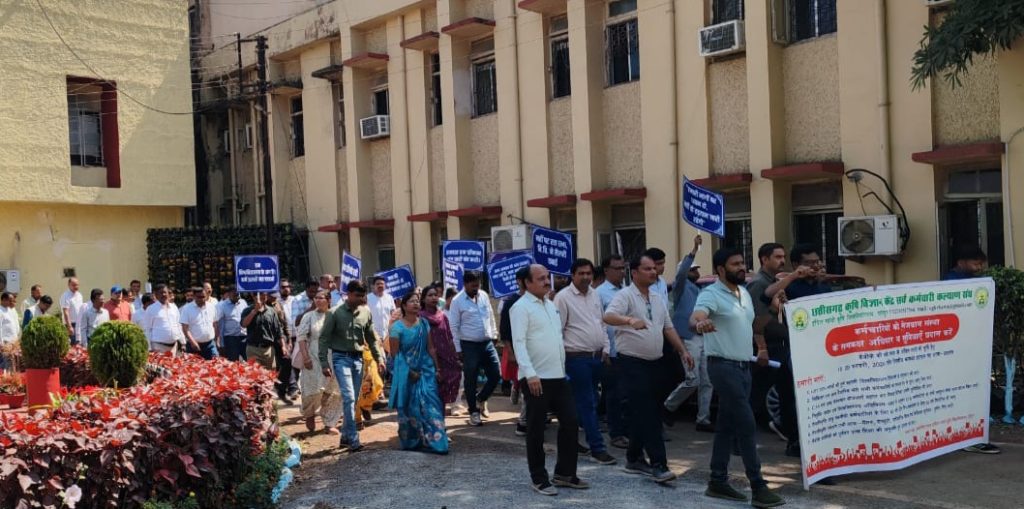 कृषि विज्ञान केंद्र (केव्हीके) कर्मचारियों की पाँच दिवसीय कामबंद हड़ताल के तीसरे दिन आंदोलन ने नया मोड़ ले लिया। छत्तीसगढ़ कृषि विज्ञान केंद्र सर्व कर्मचारी कल्याण संघ के बैनर तले जारी धरना उस समय चर्चा में आ गया,जब इंदिरा गांधी कृषि विश्वविद्यालय के प्रशासनिक भवन के मुख्य द्वार पर ताला जड़ दिया गया।पुलिस बल की मौजूदगी में हुई इस कार्रवाई के बाद कर्मचारियों को गेट के बाहर बैठकर धरना देना पड़ा।