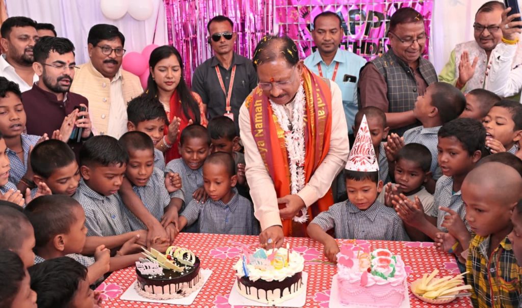 मुख्यमंत्री विष्णुदेव साय ने बच्चों के साथ केक काटा, उनके नाम पूछे,पढ़ाई के बारे में जाना और उनके सपनों को ध्यान से सुना। उन्होंने बच्चों को बड़े सपने देखने और जीवन में आगे बढ़ने के लिए प्रेरित किया।