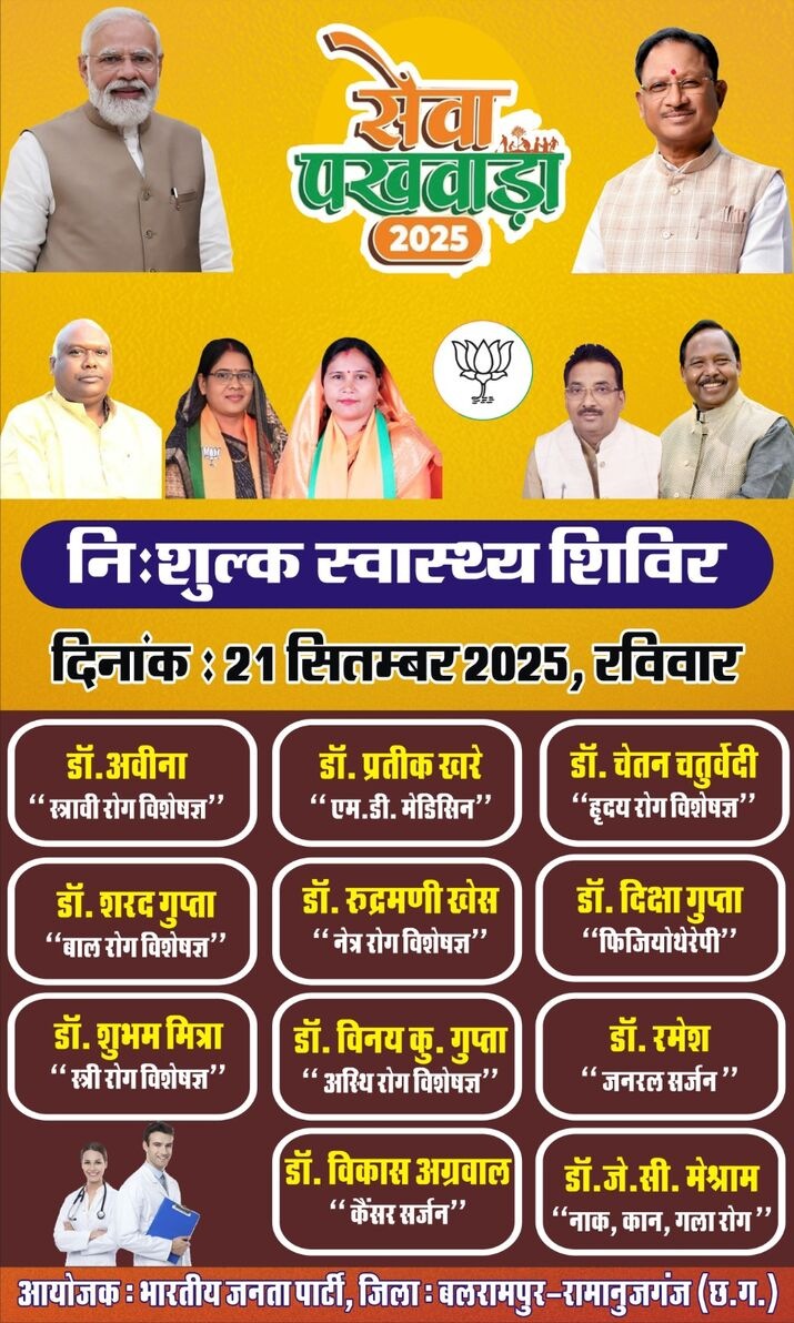 संदिली सिंह,बलरामपुर/छत्तीसगढ़,19सितंबर2025,विशेष रिपोर्ट-Nexis News प्रधानमंत्री नरेंद्र मोदी के 75वें जन्मदिन के अवसर पर, भारतीय जनता पार्टी, जिला बलरामपुर-रामानुज़गंज द्वारा 17 सितंबर से 2 अक्टूबर तक